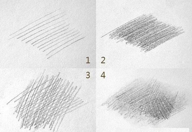 因为如果第一次与第二次的排线相平行,势必造成有线条重复显得太深,而有些又造成空白,使调子不均匀。要让前一次排线与后一次排线交错进行,要使线与线交错成扁棱状,多层多角度的线条使画面更丰富。