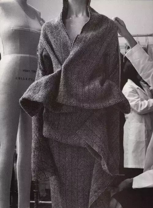 他的衣服让人无法联想到社会上的任何一种人的类型,他的衣服拒绝被归类到任何一个类别。因为时装的制度规定着根据季节更迭不停变换流行。而他所做的就是破坏这个制度,作出“不是衣服的衣服”。